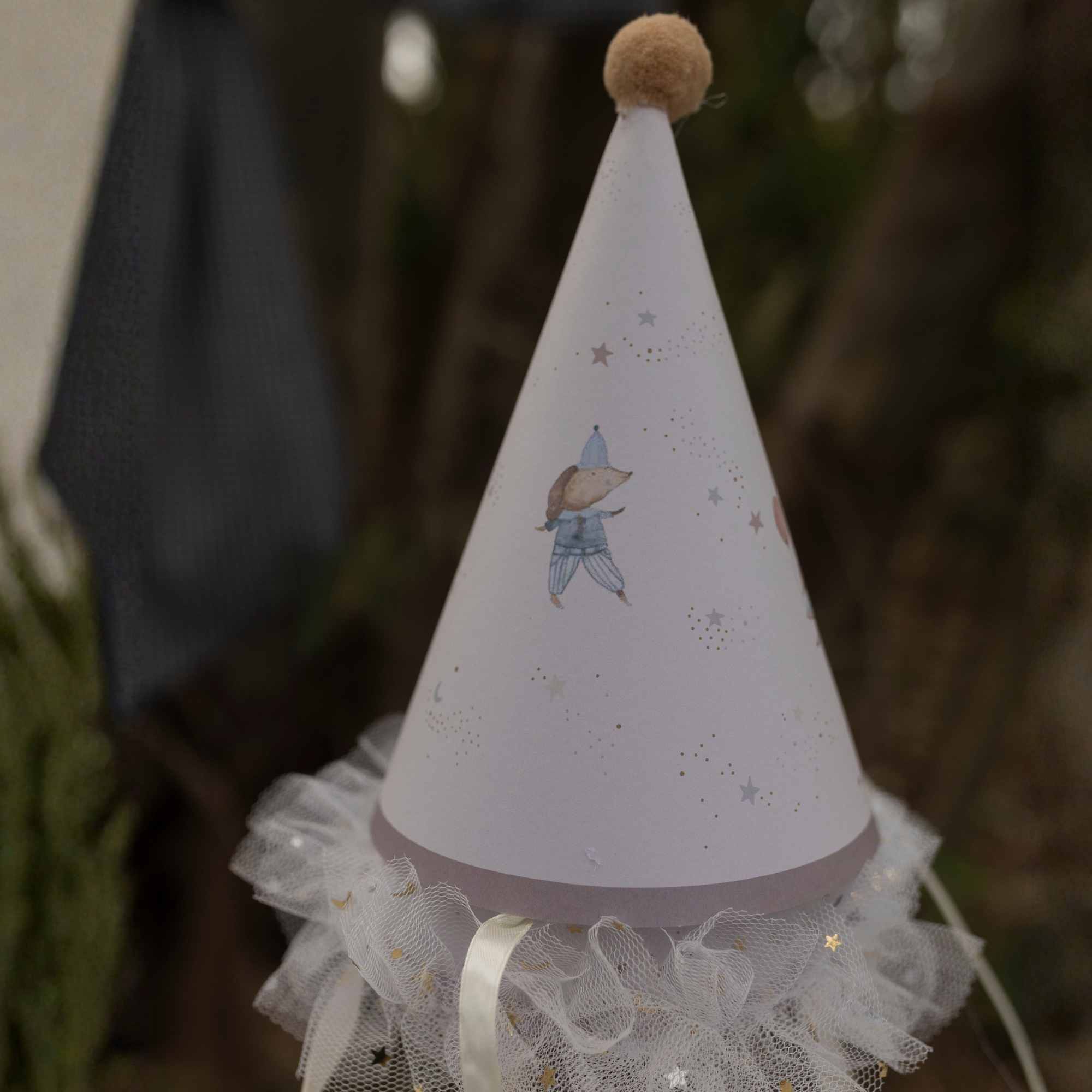 כובע יוקרתי בעבודת יד עם איור מקורי בצבעי מים של Ms. Elson הפריט מעניק למסיבה מראה עשיר ומיוחד – פריט מושלם לצילומים שהופכים לזכרונות שנשמרים לשנים.