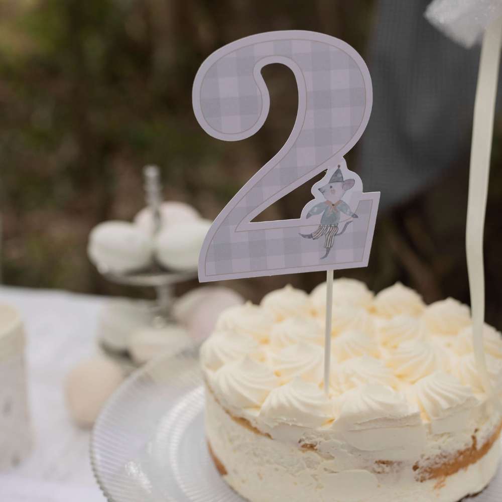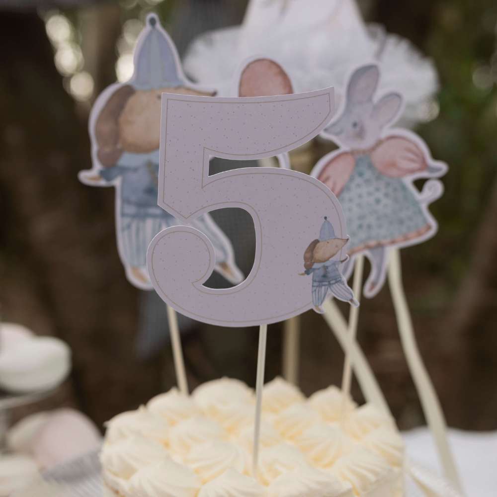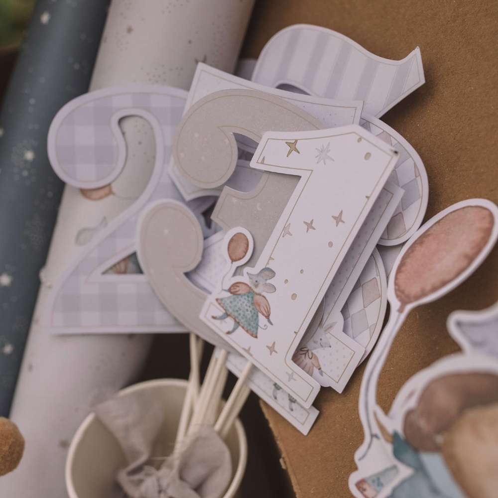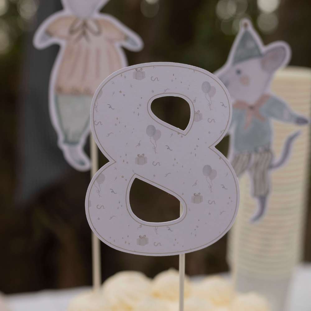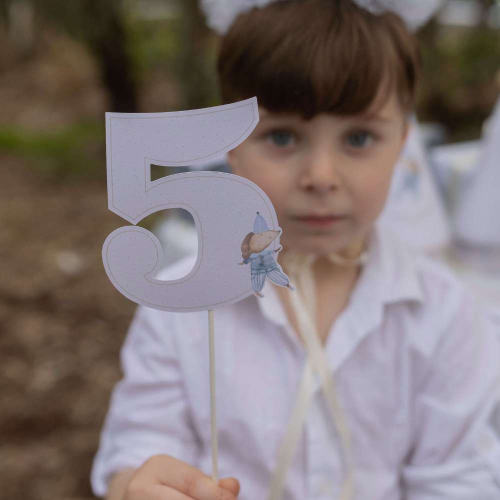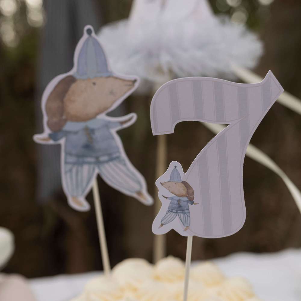 טופר מספר מאויר בודד עם איור צבעי מים ודמויות, לקישוט עוגות וקאפקייקס — חלופה מעוצבת לנר מספר.