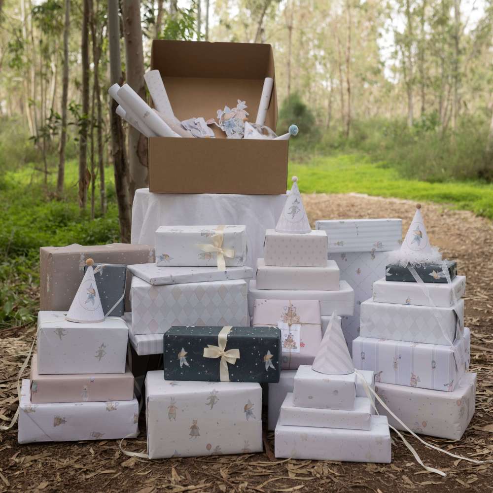 דף אריזה מאויר עם איור מקורי בצבעי מים מבית Ms Elson, שמשדרג כל מתנה והופך אותה לחגיגית ומרשימה במיוחד.