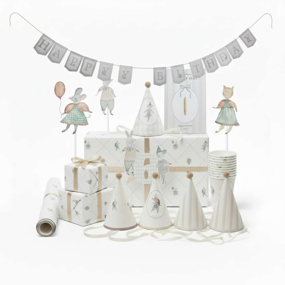 מארז שולחן חגיגה קסום נבנה ליצירת מראה חגיגי שלם — קיר, שולחן ועוגה — בשפה מאוירת אחת מוקפדת. זהו מארז שנותן תחושת הפקה מעוצבת — בלי להזמין מעצב אירועים ובלי להרכיב הכול לבד.