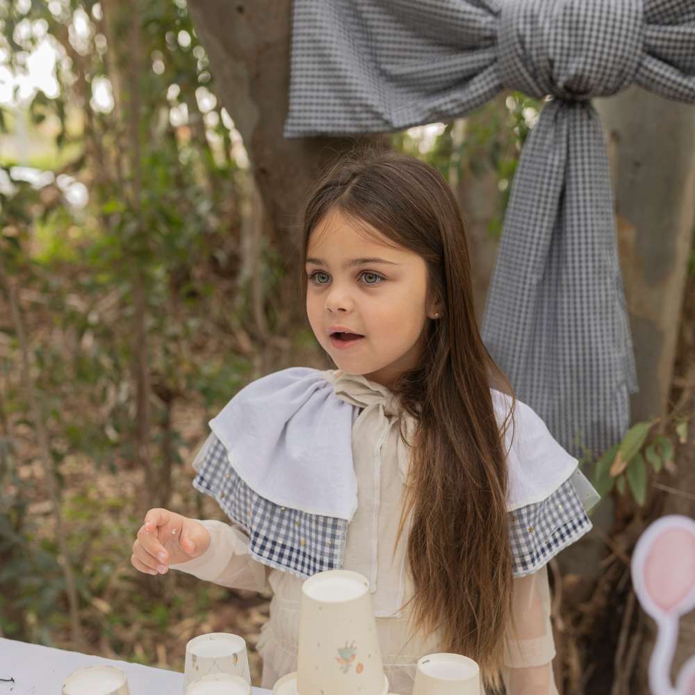 הגלימה נסגרת באמצעות סרט פפיון עדין המאפשר התאמה גמישה ונוחה, כך שהפריט אינו תלוי מידה מדויקת ויכול ללוות את הילד/ה לאורך שנים.