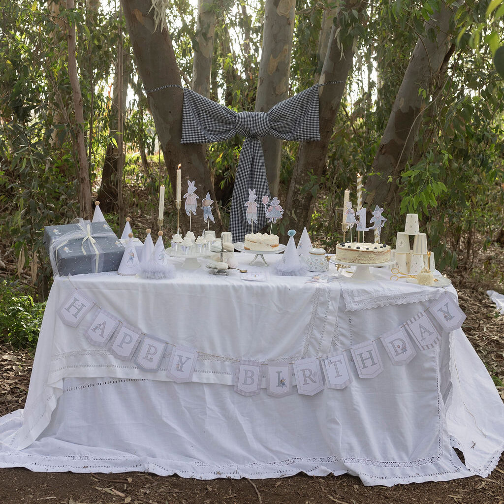 זהו פריט טקסטילי בוטיקי בעל נוכחות ברורה — כזה שמגדיר את החלל ברגע. הוא מתאים לתלייה על קיר, עץ, דלת, מעל שולחן חגיגי או כרקע לצילומי יום הולדת — ומשמש גם כאלמנט דקורטיבי על־זמני בחדר ילדים.