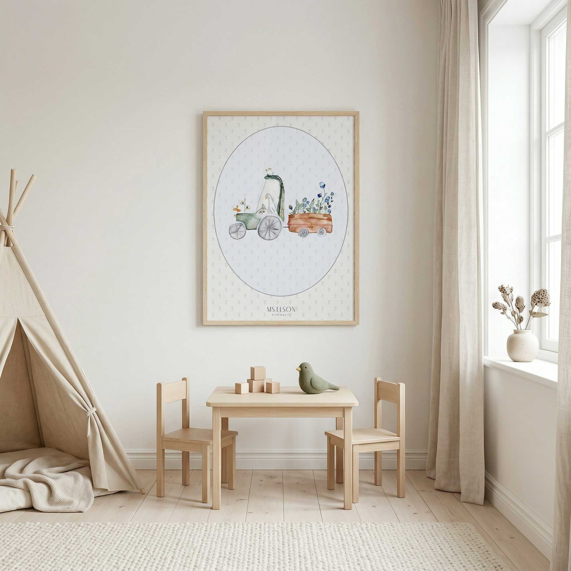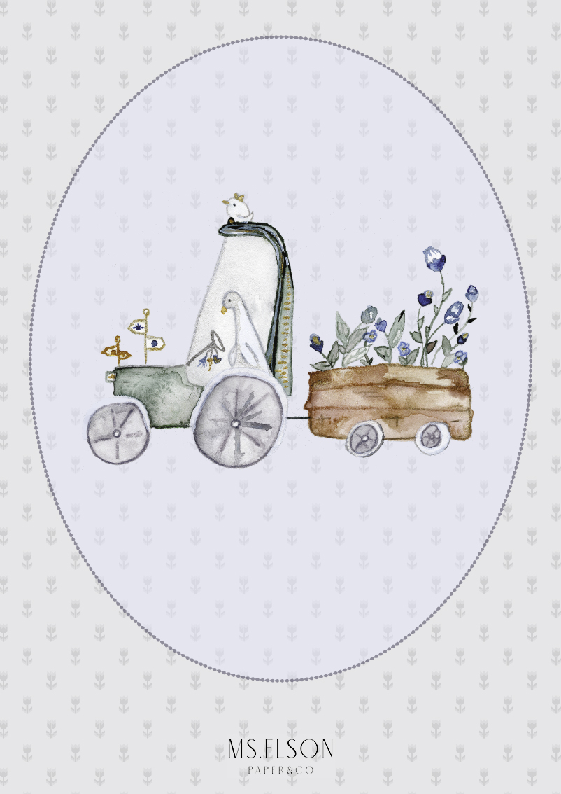איור מקורי, נעשה בטכניקה ידנית של צבעי מים ודיו.